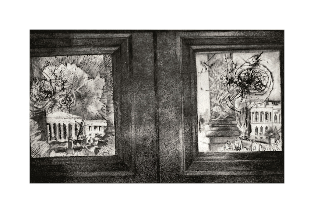 Capital Tourist - 10”w x 6”h – Conte Crayon on Paper.