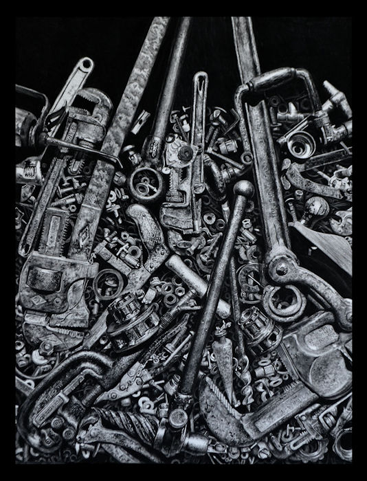 Family Trades -30”w x 40”h - Conte Crayon on Watercolor Paper