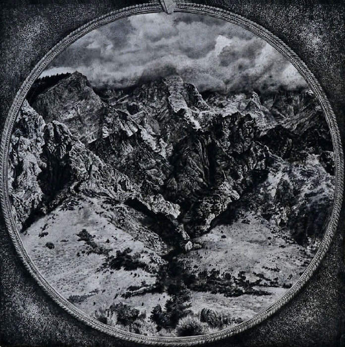 Orb of a Veiled Peak - Conte Crayon - 40" x 40"