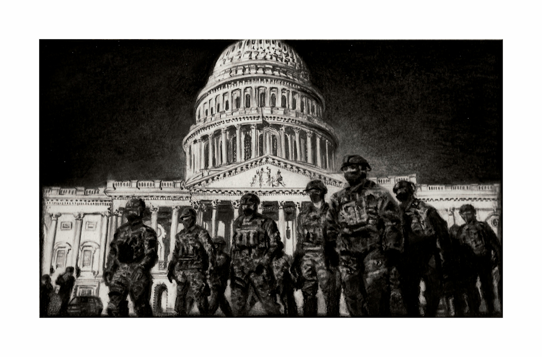 Protecting Democracy From Ourselves - 10”w x 6”h – Conte Crayon on Paper.