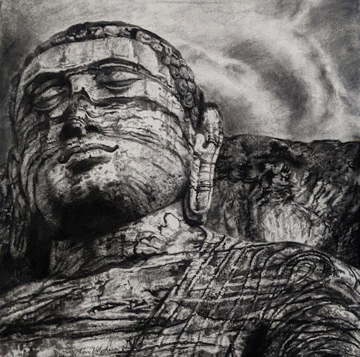 The Strengh of Silence -18”w x 18”w - Conte Crayon on Watercolor Paper