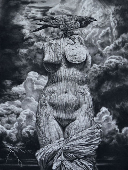 Venus and Munnin - 30"w x 40"h Conte Crayon on Watercolor Paper