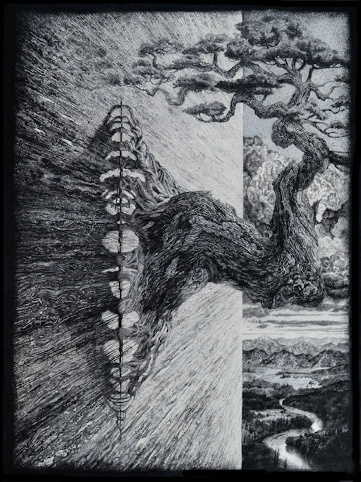 View of the Triumvirate- 30” x 40” Conte Crayon on Watercolor Paper